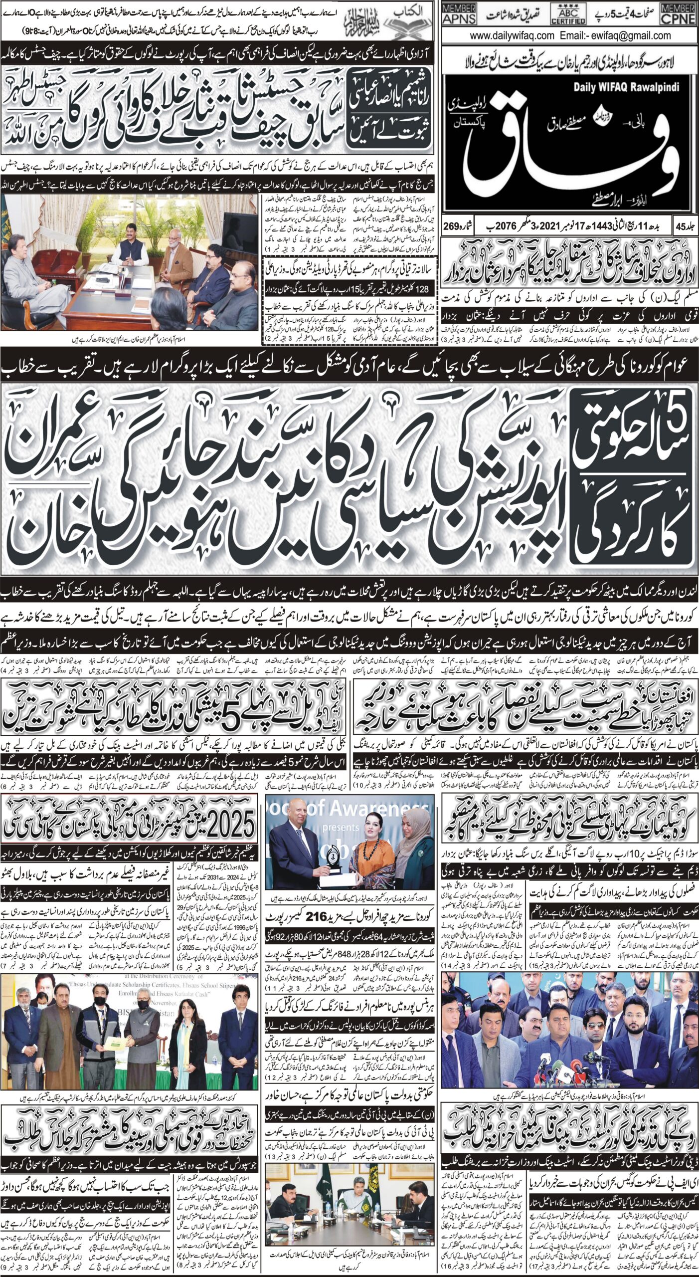 Daily Wifaq 17-11-2021 – ePaper – Rawalpindi – page 01Daily Wifaq 17-11-2021 – ePaper – Rawalpindi – page 02Daily Wifaq 17-11-2021 – ePaper – Rawalpindi – page 03Daily Wifaq 17-11-2021 – ePaper – Rawalpindi – page 04ملتی جلتی مزید خبریںe-Paper – Daily Wifaq – Rawalpindi – 17-01-2023 پوسٹوں کی نیویگیشنe-Paper – Daily Wifaq – Rawalpindi – 16-11-2021 e-Paper – Daily Wifaq – Rawalpindi – 18-11-2021