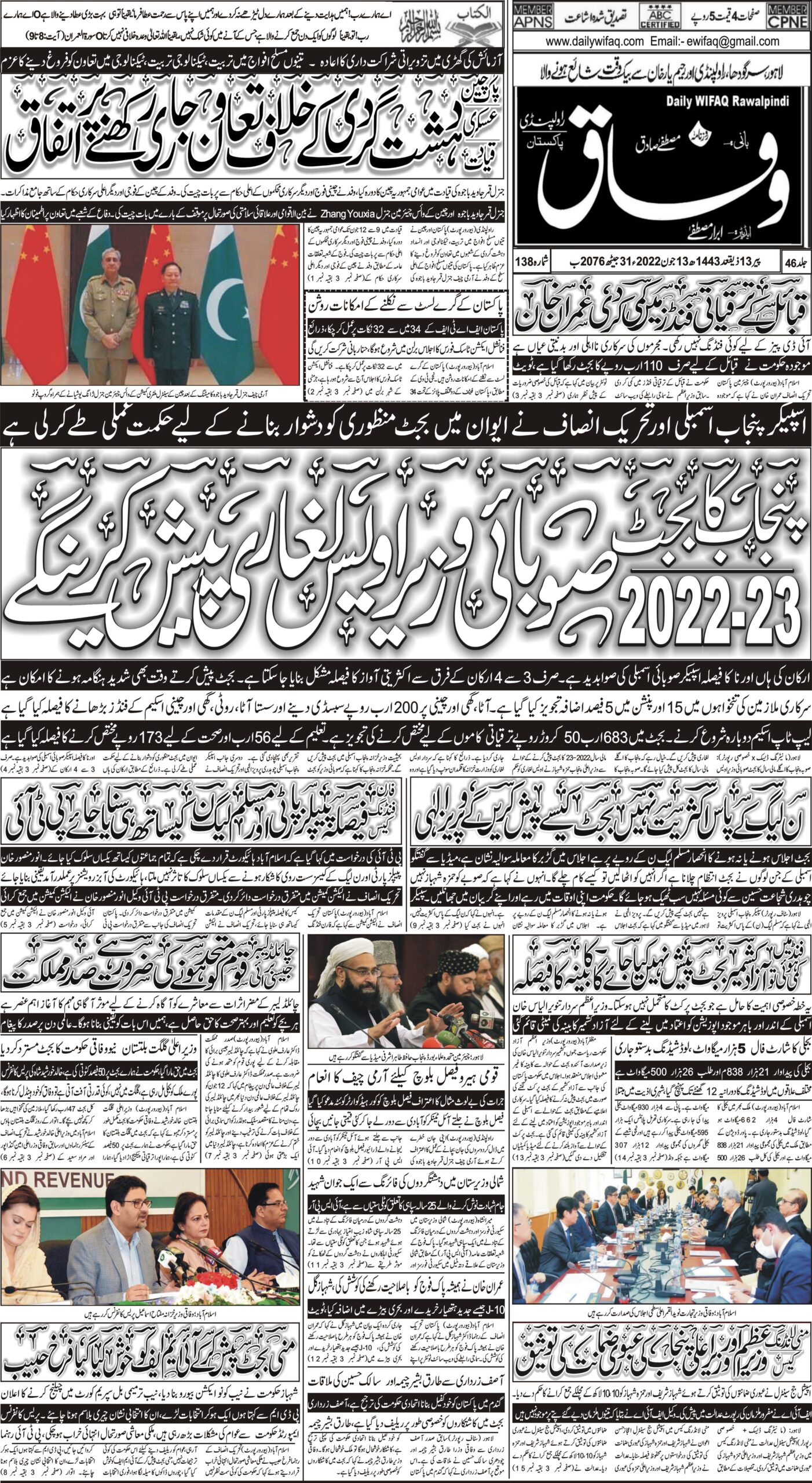 Daily Wifaq 13-06-2022 – ePaper – Rawalpindi – page 01Daily Wifaq 13-06-2022 – ePaper – Rawalpindi – page 02Daily Wifaq 13-06-2022 – ePaper – Rawalpindi – page 03Daily Wifaq 13-06-2022 – ePaper – Rawalpindi – page 04ملتی جلتی مزید خبریںe-Paper – Daily Wifaq – Rawalpindi – 17-01-2023 پوسٹوں کی نیویگیشنe-Paper – Daily Wifaq – Rawalpindi – 11-06-2022 e-Paper – Daily Wifaq – Rawalpindi – 14-06-2022