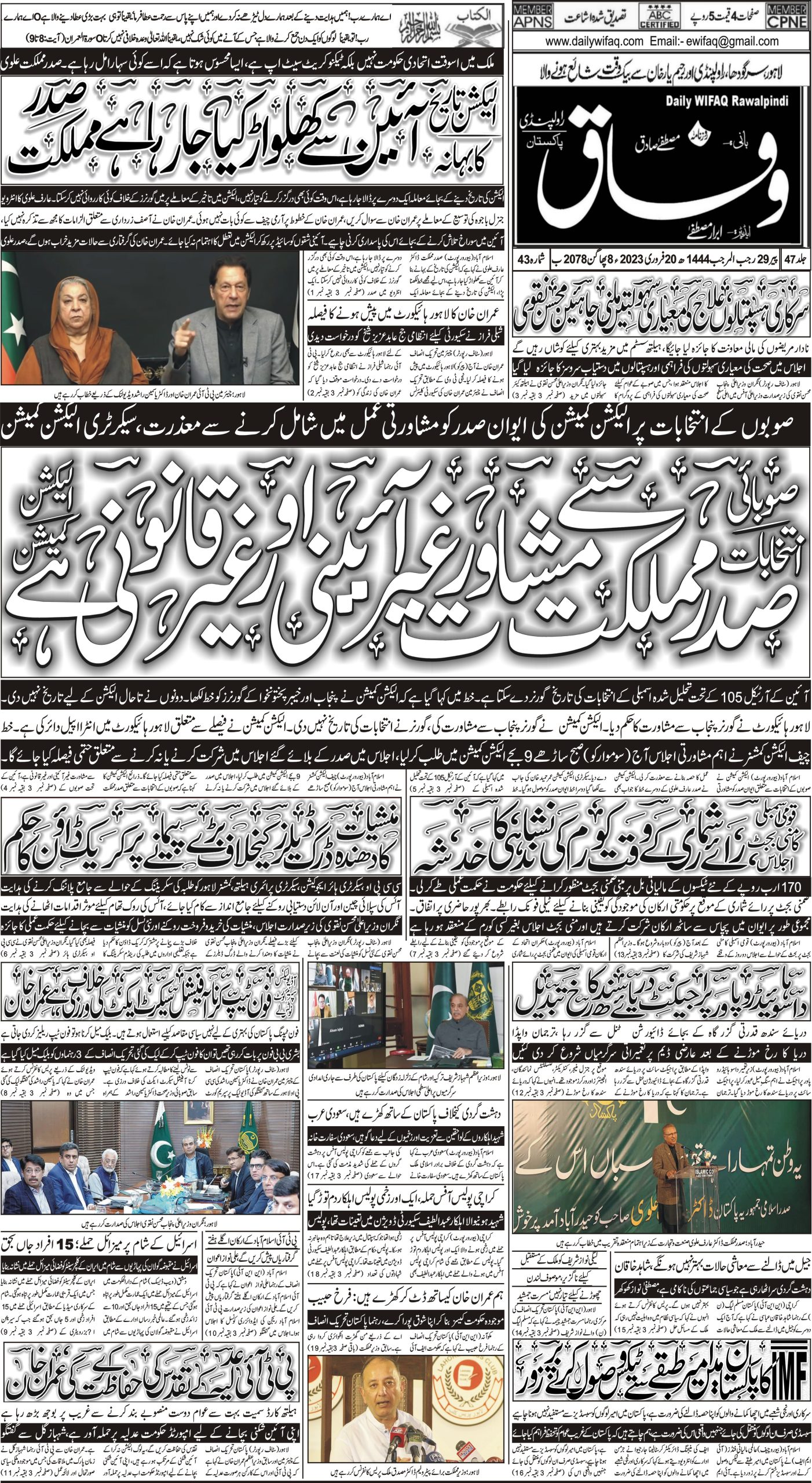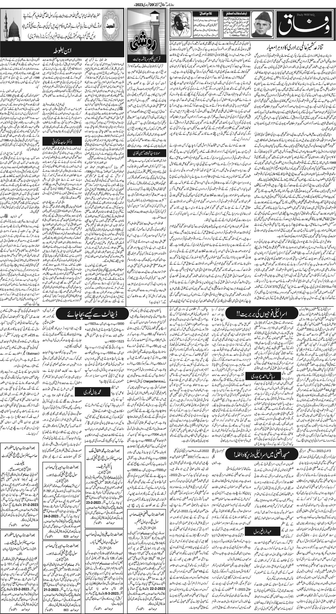Daily Wifaq 20-02-2023 – ePaper – Rawalpindi – page 01Daily Wifaq 20-02-2023 – ePaper – Rawalpindi – page 02Daily Wifaq 20-02-2023 – ePaper – Rawalpindi – page 03Daily Wifaq 20-02-2023 – ePaper – Rawalpindi – page 04ملتی جلتی مزید خبریںe-Paper – Daily Wifaq – Rawalpindi – 17-01-2023 پوسٹوں کی نیویگیشنe-Paper – Daily Wifaq – Rawalpindi – 18-02-2023 e-Paper – Daily Wifaq – Rawalpindi – 21-02-2023