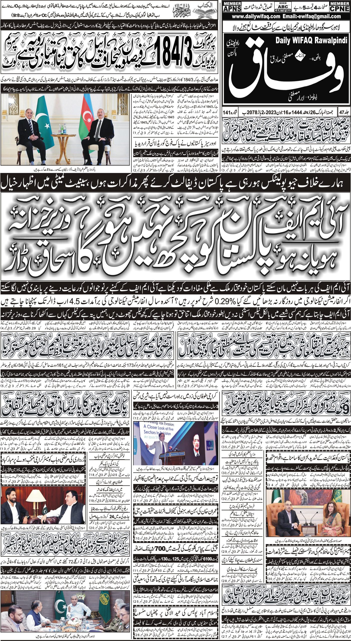 Daily Wifaq 16-06-2023 – ePaper – Rawalpindi – page 01Daily Wifaq 16-06-2023 – ePaper – Rawalpindi – page 02Daily Wifaq 16-06-2023 – ePaper – Rawalpindi – page 03Daily Wifaq 16-06-2023 – ePaper – Rawalpindi – page 04ملتی جلتی مزید خبریںe-Paper – Daily Wifaq – Rawalpindi – 17-01-2023 پوسٹوں کی نیویگیشنe-Paper – Daily Wifaq – Rawalpindi – 15-06-2023 e-Paper – Daily Wifaq – Rawalpindi – 17-06-2023