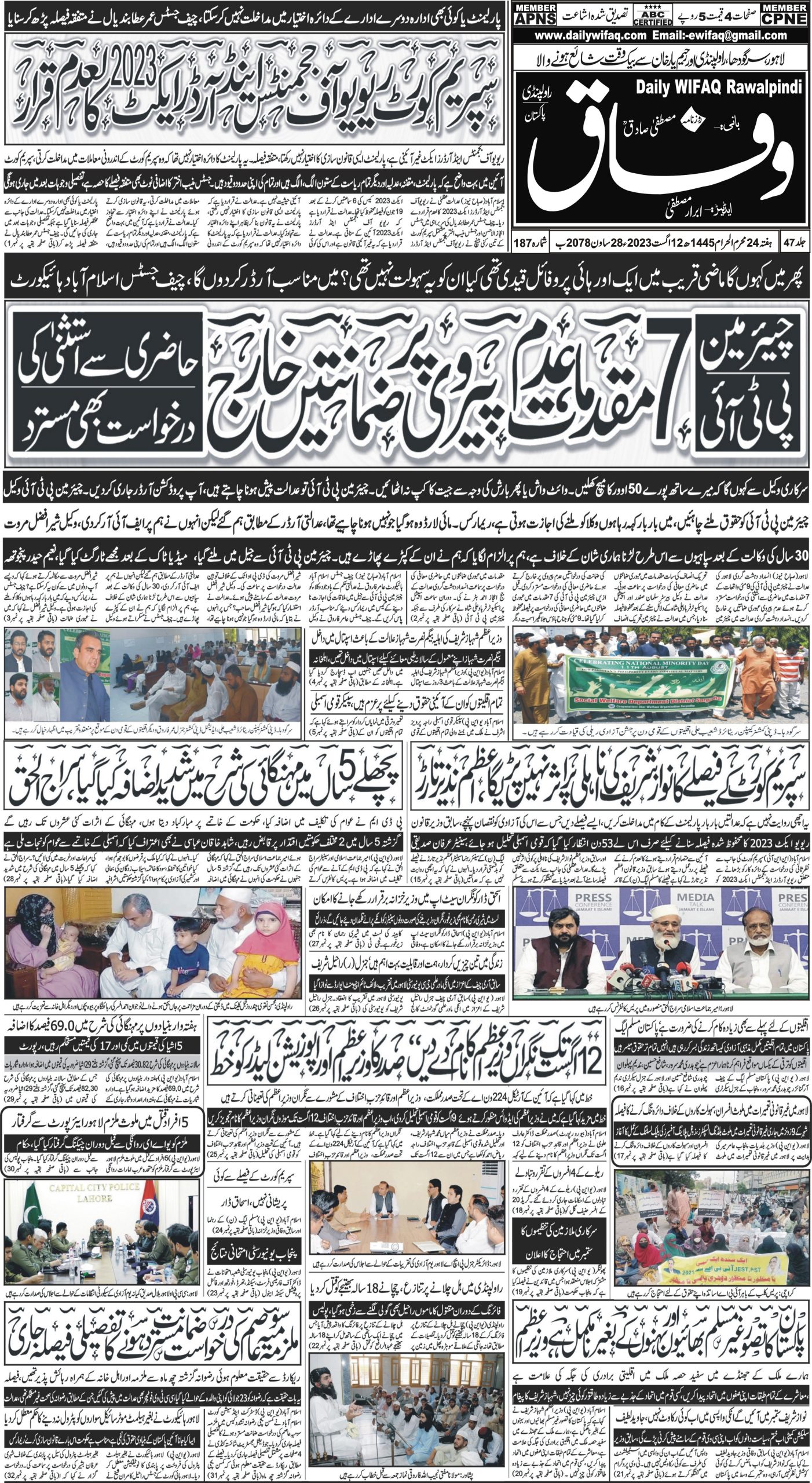 Daily Wifaq 12-08-2023 - ePaper - Rawalpindi - page 01