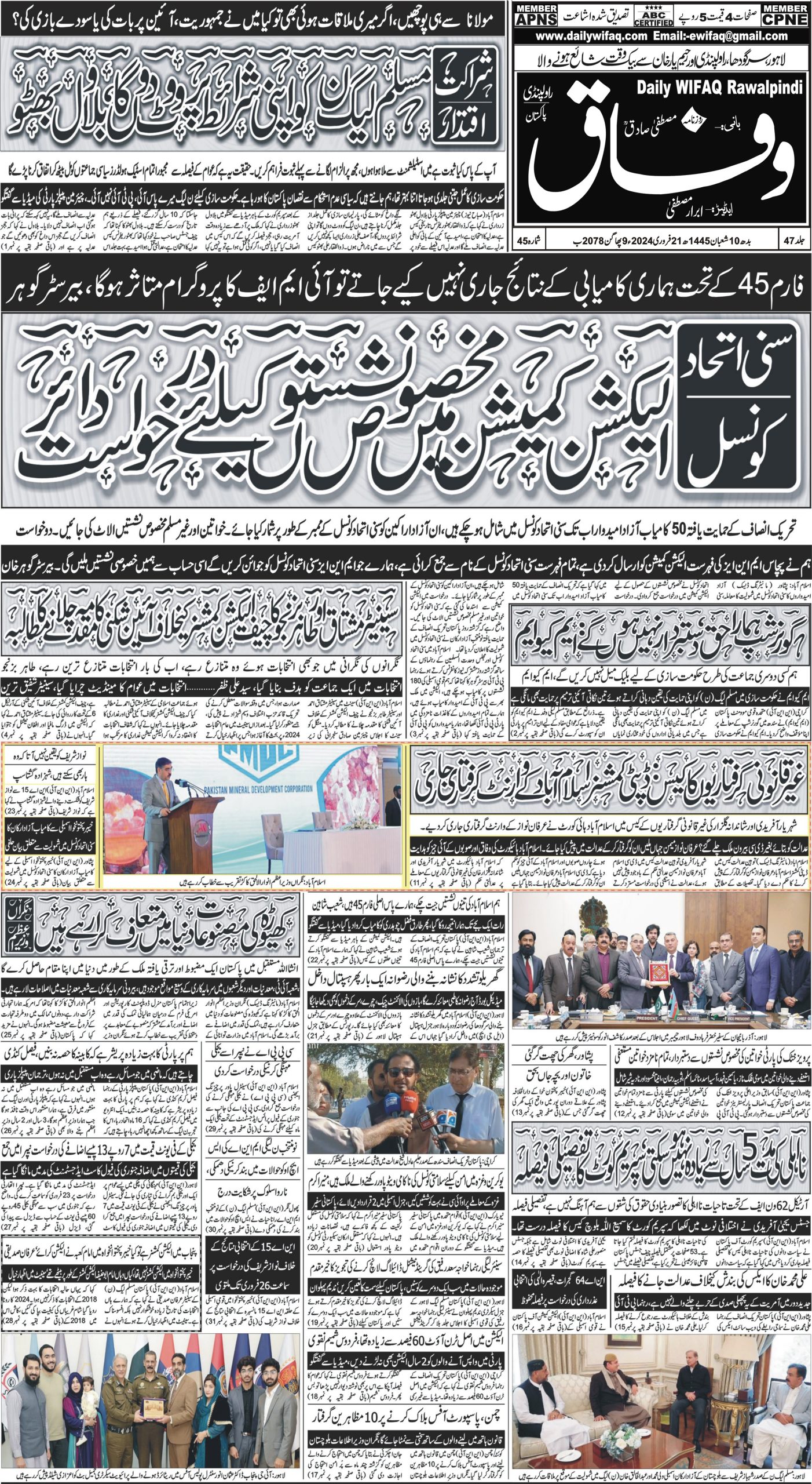 Daily Wifaq 21-02-2024 – ePaper – Rawalpindi – page 01Daily Wifaq 21-02-2024 – ePaper – Rawalpindi – page 02Daily Wifaq 21-02-2024 – ePaper – Rawalpindi – page 03Daily Wifaq 21-02-2024 – ePaper – Rawalpindi – page 04ملتی جلتی مزید خبریںe-Paper – Daily Wifaq – Rawalpindi – 17-01-2023 پوسٹوں کی نیویگیشنe-Paper – Daily Wifaq – Rawalpindi – 20-02-2024 e-Paper – Daily Wifaq – Rawalpindi – 22-02-2024