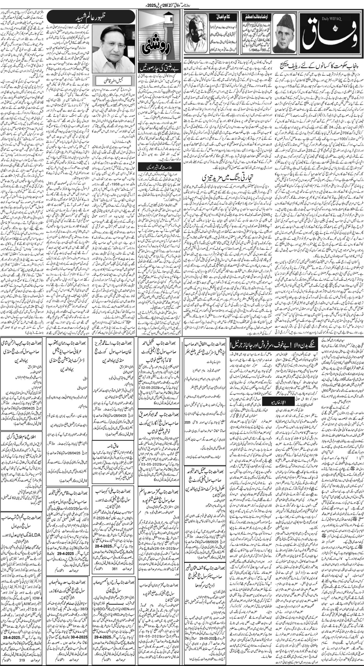 Daily Wifaq 26-04-2025 – ePaper – Rawalpindi – page 01Daily Wifaq 26-04-2025 – ePaper – Rawalpindi – page 02Daily Wifaq 26-04-2025 – ePaper – Rawalpindi – page 03Daily Wifaq 26-04-2025 – ePaper – Rawalpindi – page 04ملتی جلتی مزید خبریںe-Paper – Daily Wifaq – Rawalpindi – 17-01-2023 پوسٹوں کی نیویگیشنe-Paper – Daily Wifaq – Rawalpindi – 25-04-2025 e-Paper – Daily Wifaq – Rawalpindi – 28-04-2025