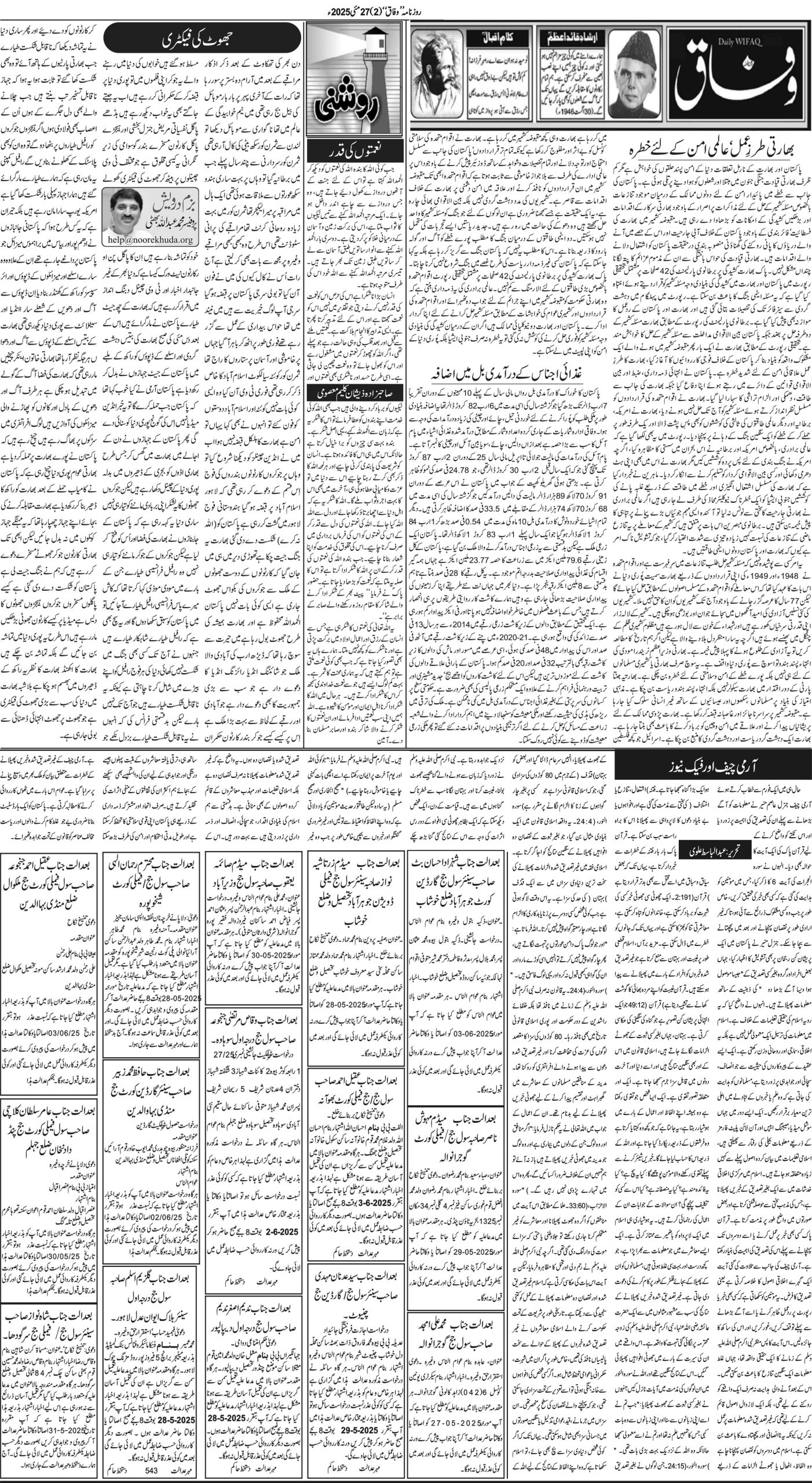 Daily Wifaq 27-05-2025 – ePaper – Rawalpindi – page 01Daily Wifaq 27-05-2025 – ePaper – Rawalpindi – page 02Daily Wifaq 27-05-2025 – ePaper – Rawalpindi – page 03Daily Wifaq 27-05-2025 – ePaper – Rawalpindi – page 04ملتی جلتی مزید خبریںe-Paper – Daily Wifaq – Rawalpindi – 17-01-2023 پوسٹوں کی نیویگیشنe-Paper – Daily Wifaq – Rawalpindi – 26-05-2025 e-Paper – Daily Wifaq – Rawalpindi – 28-05-2025