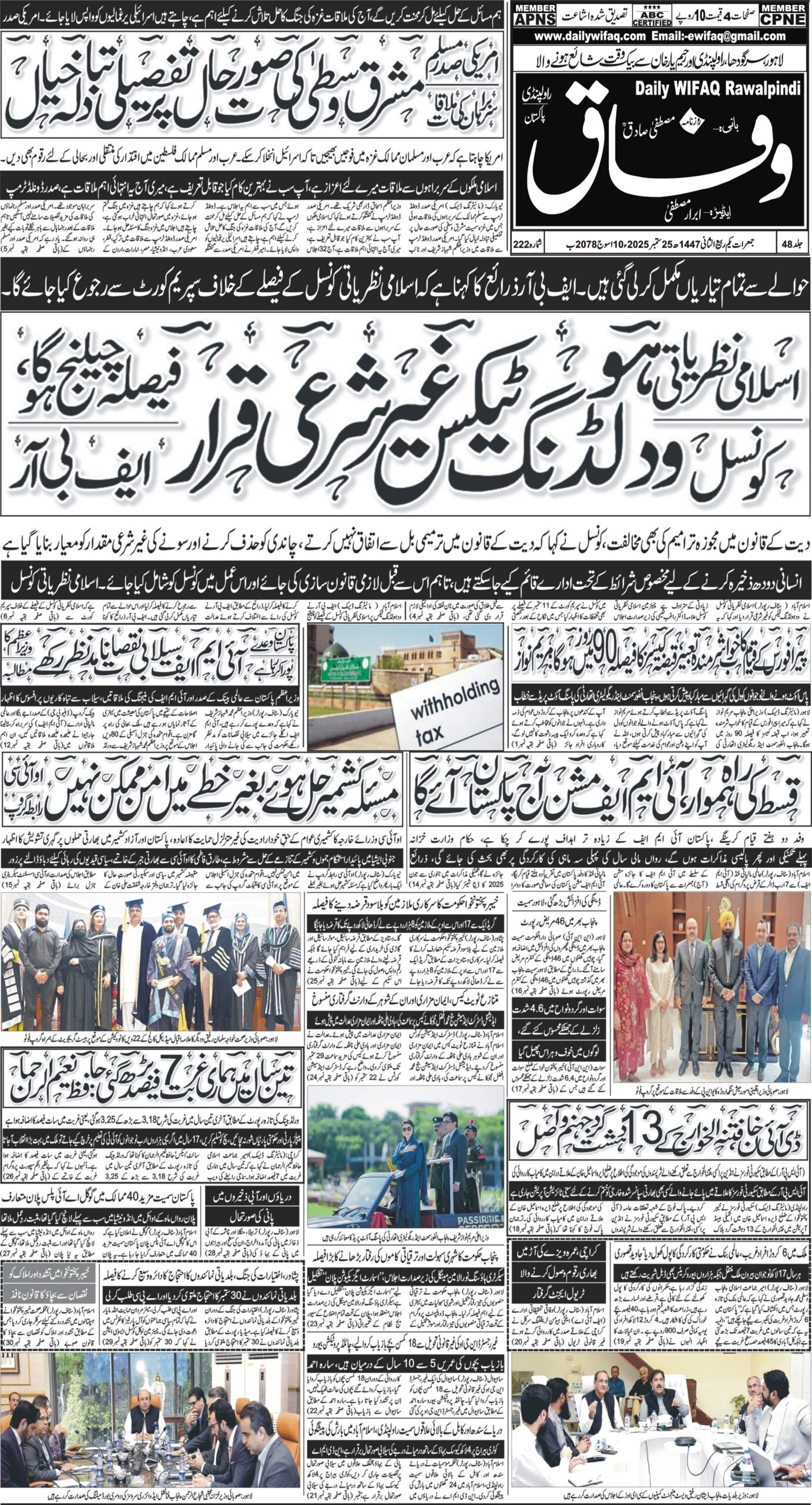 Daily Wifaq 25-09-2025 - ePaper - Rawalpindi - page 01