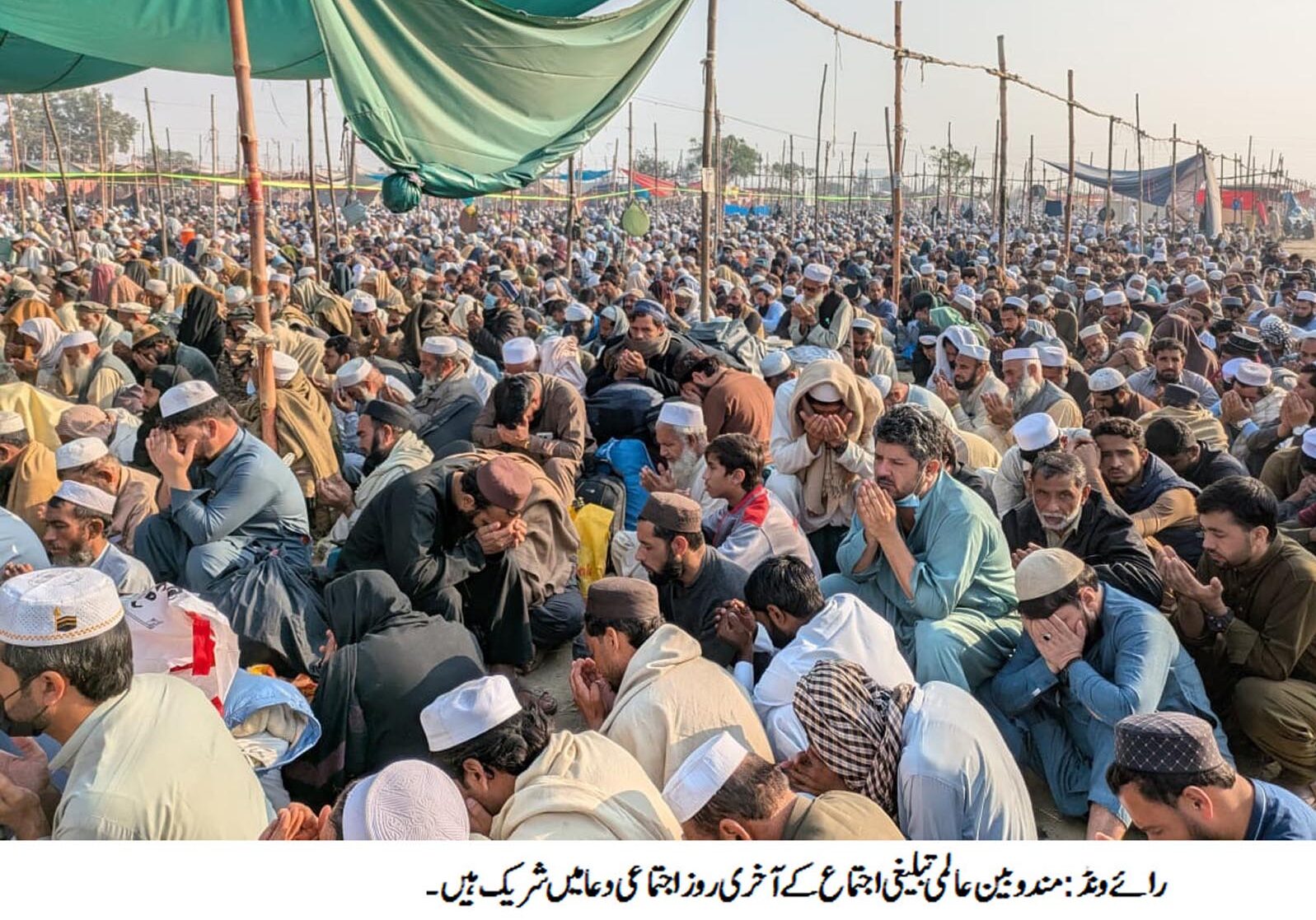 رائے ونڈ میں جاری عالمی اجتماع کا دوسرا مرحلہ اختتامی دعا کیساتھ اختتام پذیر ہوگیا،اختتامی دعا سے قبل لاکھوں کے مجمع سے خطاب کرتے ہوئے مولانا عبدالرحمان بمبئی آف انڈیا نے کہا کہ رائے ونڈ کا اجتماع انسانی زندگیوں میں تبدیلی کا باعث اور خیرو برکت والا بنے،لاکھوں کے مجمع میں ہزاروں انسانوں کی زندگی ایمان والی بن جائے اسکے لئے محنت کرنا ہو گا،تبلیغی جماعت کیوجہ سے لاکھوں افراد مشرف بہ اسلام ہو ئے ہیں انکی زندگیوں میں انقلاب بپا ہو چکا ہے،اپنی زندگی کو اسلام کے سنہری اصولوں کے مطابق ڈھال دنیا و آخرت کی کامیابیاں سمیٹی جا سکتی ہیں، دعوت وتبلیغ کے ذریعے مسلمانوں کی زندگیوں میں تبدیلی آنی چاہیے دنیاوی معاملات کو اسلامی شریعت کے مطابق سرانجام دینا ہوگا،مسلمان کو دھوکہ نہیں دینا ہے مسلمان نہ ہی دھوکہ دیتا ہے اور نہ ہی دھوکہ کھاتا ہے،مساجد کو آباد کرنا ہوگا مساجد کی آباد کاری بہت بڑا عمل ہے مسجد میں جانے کا مقصد نمازیوں کے حالات جاننا ہے،اجتماعی زندگی سیکھانااور سیکھنا ہے مسجد میں خوشبو لگا کر جائیں وہاں اللہ کے فرشتے موجود ہوتے ہیں