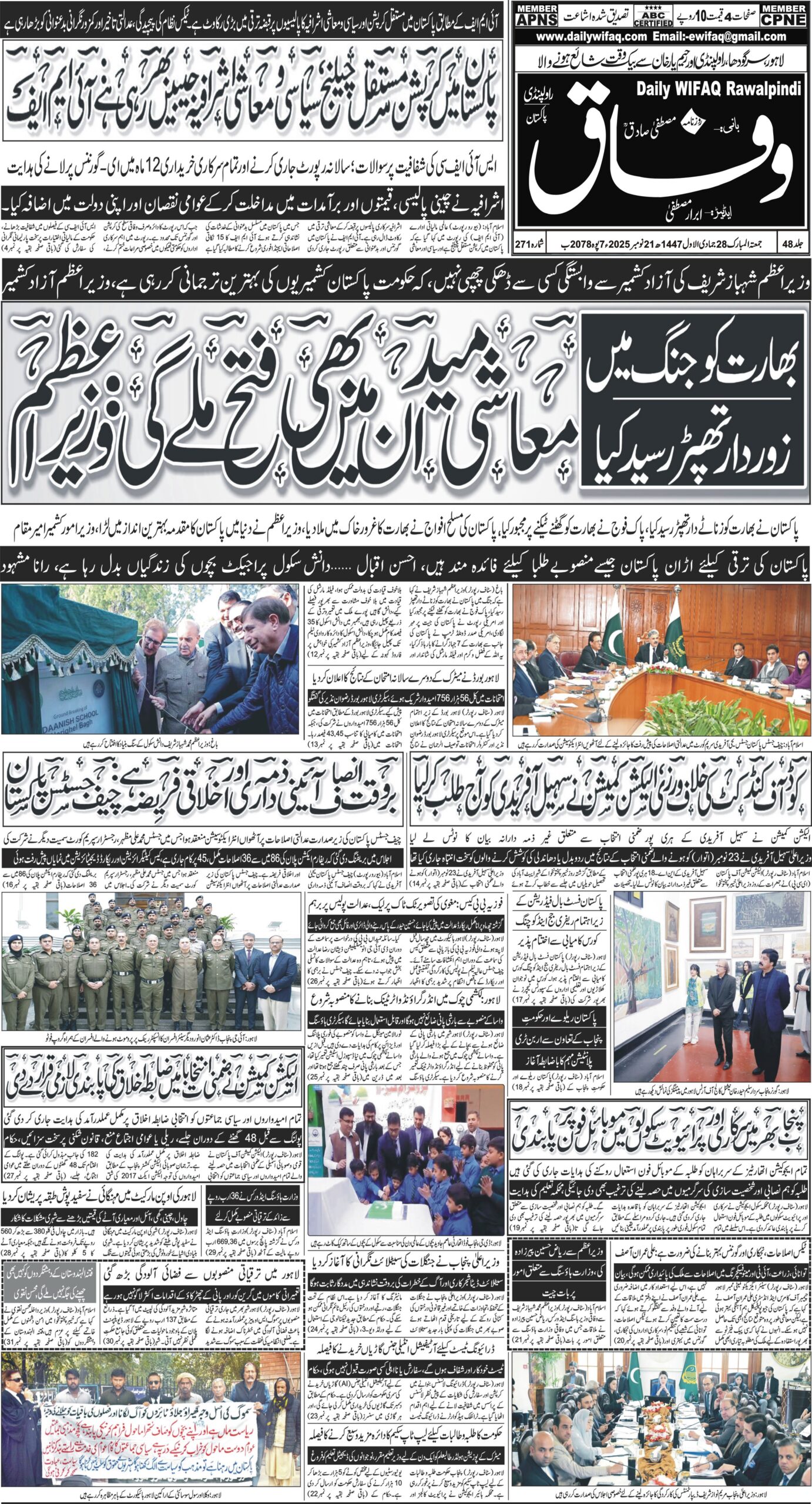 Daily Wifaq 21-11-2025 – ePaper – Rawalpindi – page 01Daily Wifaq 21-11-2025 – ePaper – Rawalpindi – page 02Daily Wifaq 21-11-2025 – ePaper – Rawalpindi – page 03Daily Wifaq 21-11-2025 – ePaper – Rawalpindi – page 04ملتی جلتی مزید خبریںe-Paper – Daily Wifaq – Rawalpindi – 17-01-2023 پوسٹوں کی نیویگیشنe-Paper – Daily Wifaq – Rawalpindi – 20-11-2025 e-Paper – Daily Wifaq – Rawalpindi – 22-11-2025