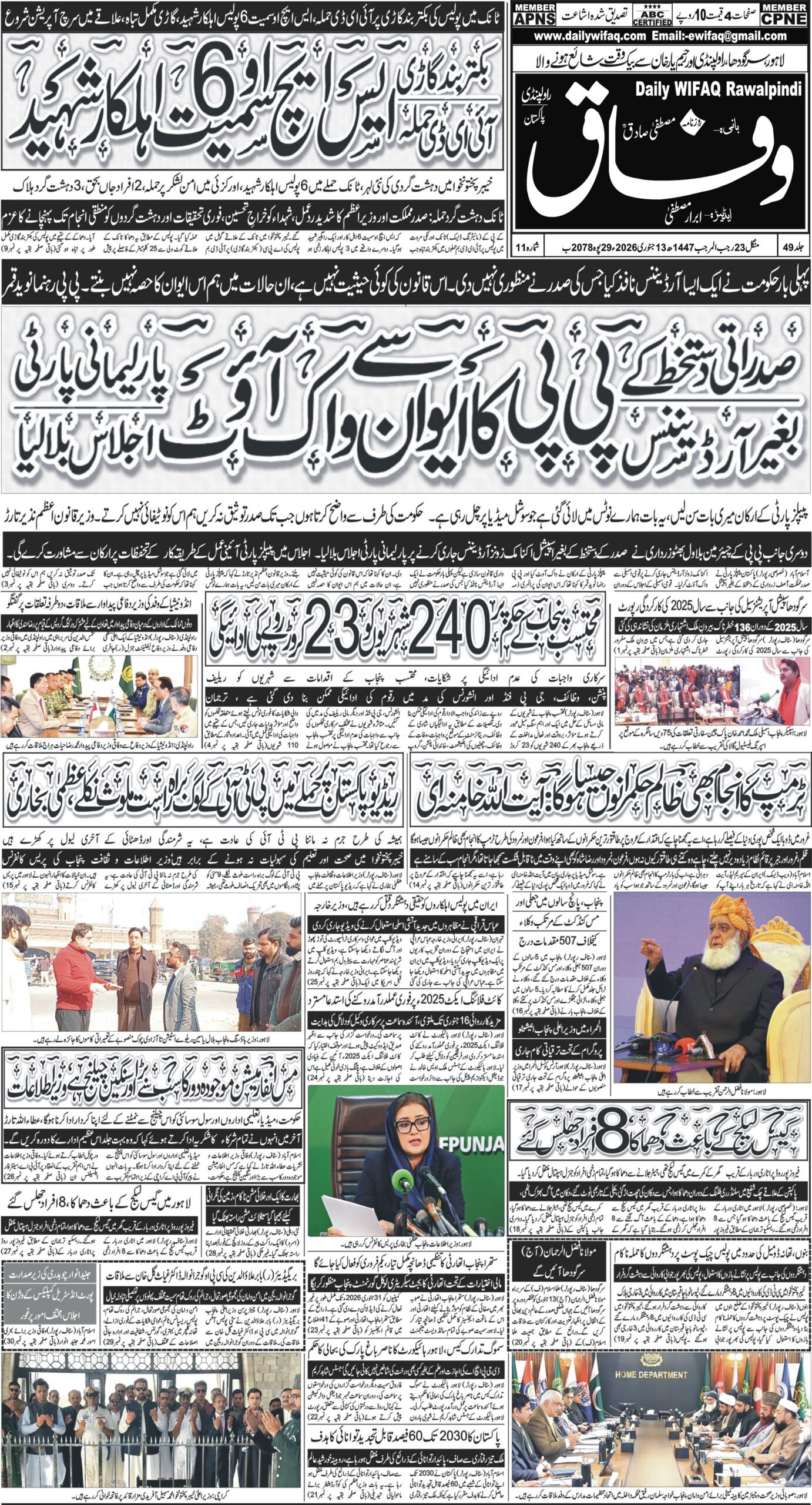 Daily Wifaq 13-01-2026 – ePaper – Rawalpindi – page 01