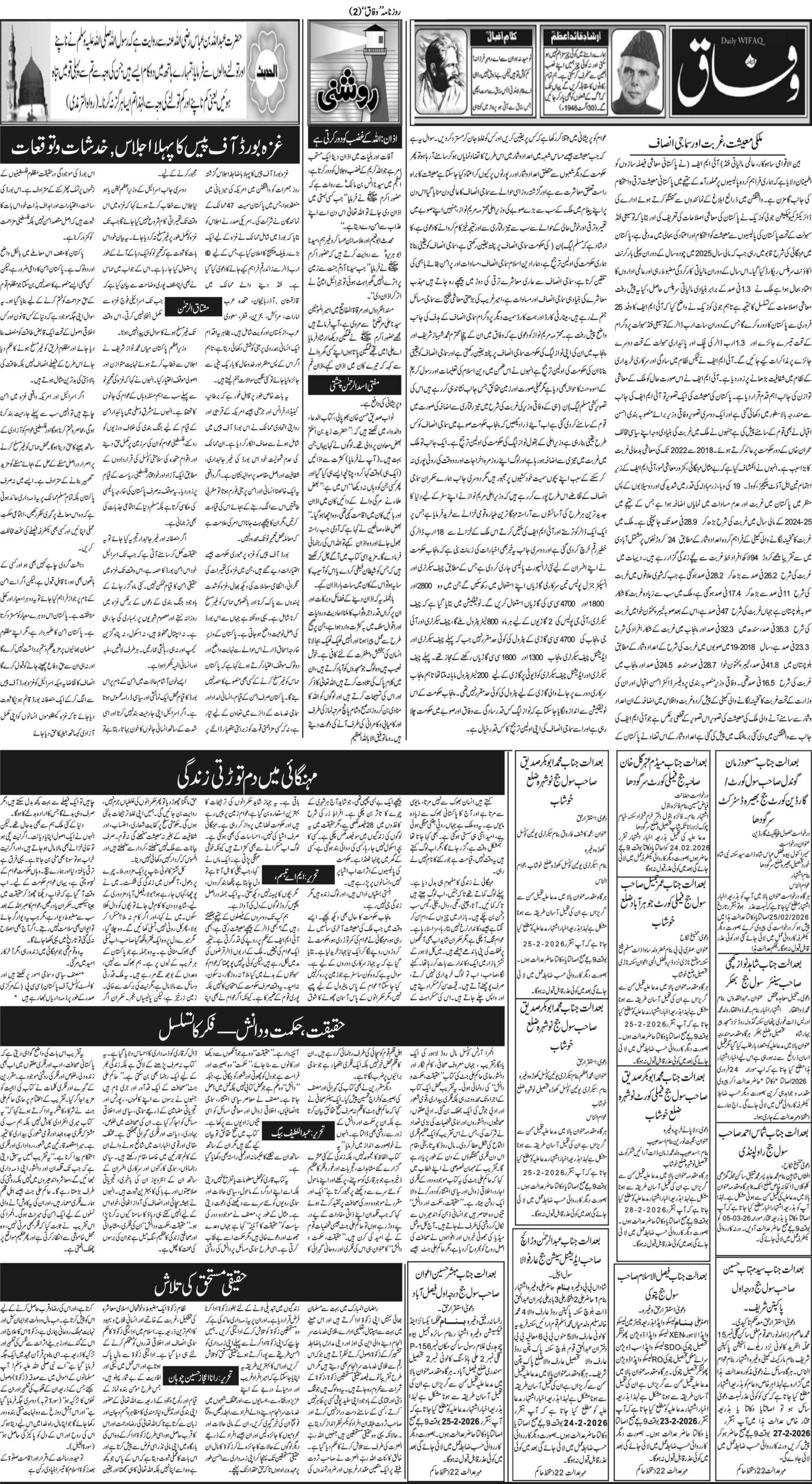 Daily Wifaq 23-02-2026 – ePaper – Rawalpindi – page 01Daily Wifaq 23-02-2026 – ePaper – Rawalpindi – page 02Daily Wifaq 23-02-2026 – ePaper – Rawalpindi – page 03Daily Wifaq 23-02-2026 – ePaper – Rawalpindi – page 04 پوسٹوں کی نیویگیشنe-Paper – Daily Wifaq – Rawalpindi – 21-02-2026 e-Paper – Daily Wifaq – Rawalpindi – 24-02-2026