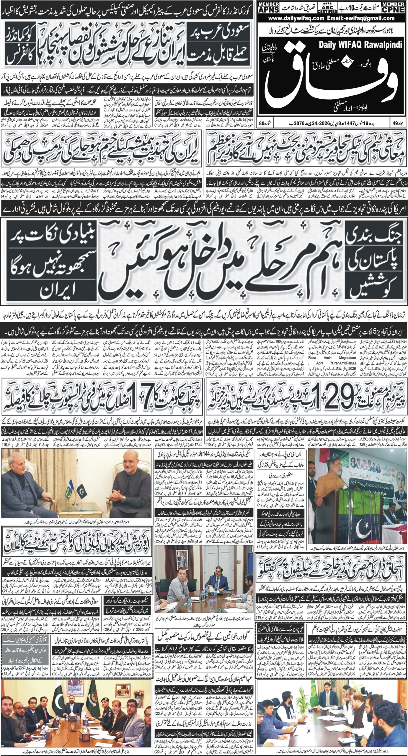 Daily Wifaq 08-04-2026 - ePaper - Rawalpindi - page 01